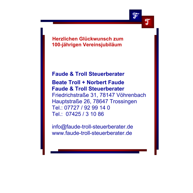 Ein herzliches Dankeschön an unsere Sponsoren, die das 100-jährige Jubiläum des FC 1926 Vöhrenbach maßgeblich unterstützen.